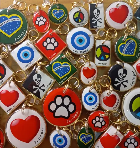 Feitas em metal, com impressão digital e revestimento em resina, as medalhas apresentam temas, formatos e tamanhos variados e, em breve, poderão ser personalizadas com o nome do seu pet ou com um tema que tenha mais a ver com ele ou com você.